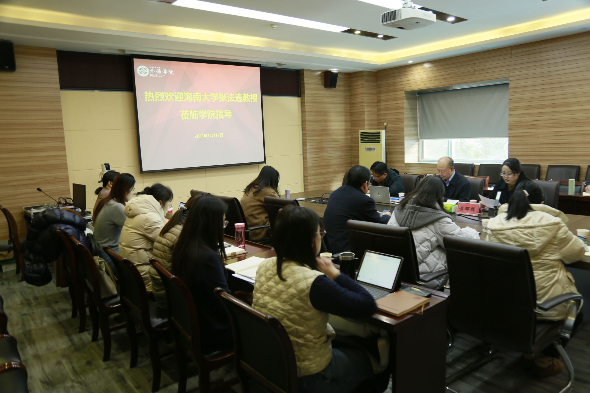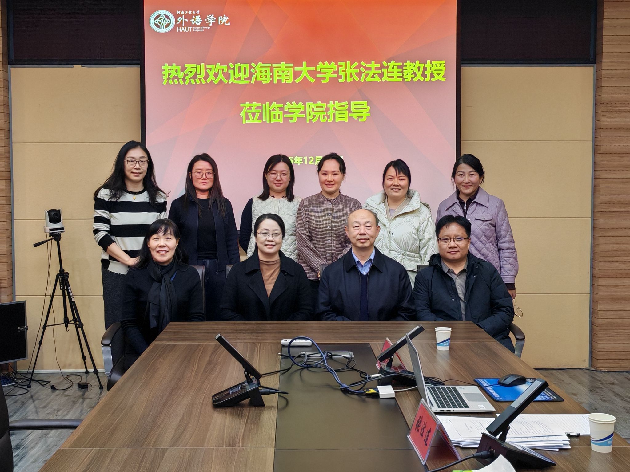 为扎实推动2026年度国家社科基金项目申报工作,提升教师科研选题与论证水平,外语学院于12月17日下午在5231会议室举办了“2026年国家社科选题专家反馈会”。国家社科基金重大课题首席专家、海南大学教授张法连为学院申报教师提供专业指导,并进行深度交流。会议由院长黄辉辉主持。