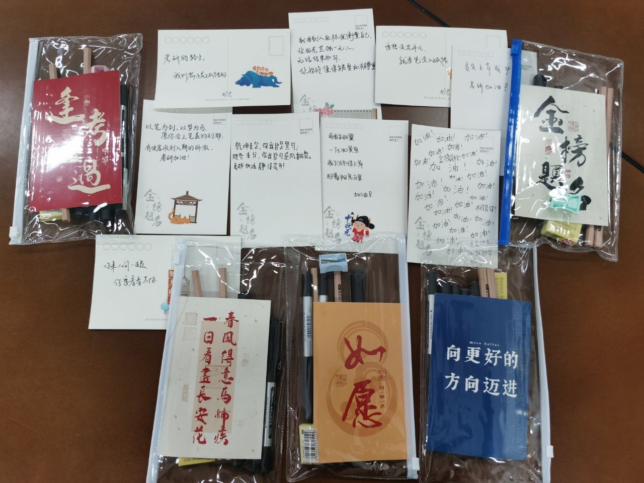 王云涛和王晓东为考研同学发放了学院精心准备的考研文具套装,以及2023级本科生写满美好准圆的精美卡片。