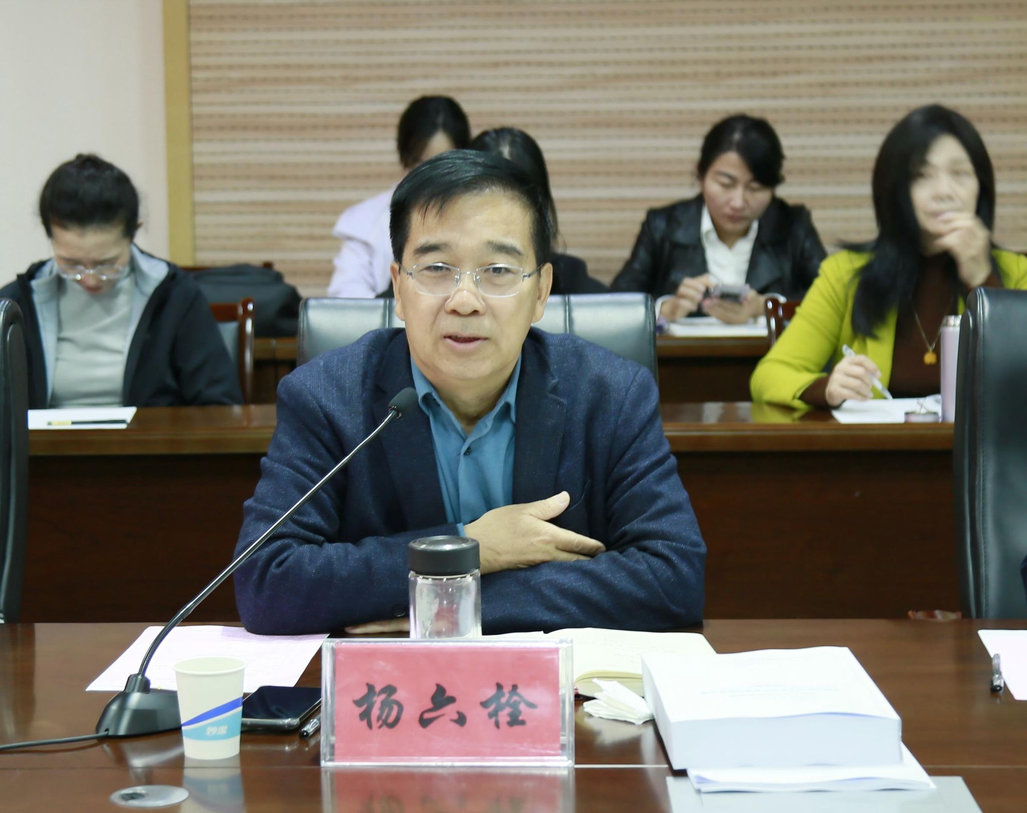 随后,教务处处长杨六栓致辞。他从着力建设智慧课程、融入人工智能技术、持续提升“两性一度”、深化改进评价方式、聚力锻造智慧课程等方面,全面介绍了学校在教学改革与人才培养上的总体思路与核心举措。他充分肯定了外语学院在前期大纲修订工作中取得的阶段性成果,并希望学院以此次论证会为契机,广泛听取专家意见,持续推动外语学科实现更高质量发展。