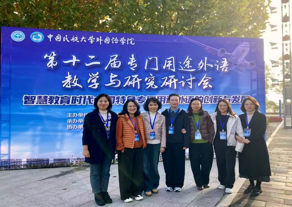 2025年10月31日至11月2日,由中国民航大学承办的“第十二届专门用途外语教学与研究研讨会”在天津成功举行。本届会议以“智慧教育时代中国特色专门用途外语的创新与发展”为主题,吸引了全国多所高校的外语教师与专家学者参与。我校外语学院大学英语教学团队七名骨干教师参加了此次研讨会。