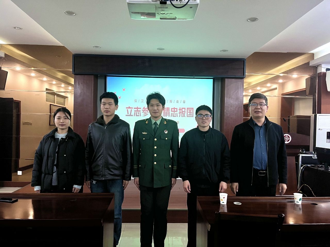 为响应国家征兵号召,激发广大学子参军报国热情,增强青年大学生的国防观念与使命担当,12月16日,外语学院在博闻楼5225会议室举办征兵入伍宣讲会,学院党委副书记王晓东、学工办主任郭珊珊、学生干部代表和有应征入伍意向的学生参加了会议。会议特邀学校征兵宣讲团成员担任主讲嘉宾。