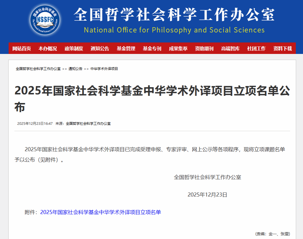 未来,学院将继续鼓励教师聚焦国家战略需求,积极参与国际学术对话,打造具有影响力的外译学术品牌,为提升我国哲学社会科学国际传播效能、推动文明交流互鉴作出更大贡献。(撰稿:徐洁 审校:沈国荣 审核:王晓东)