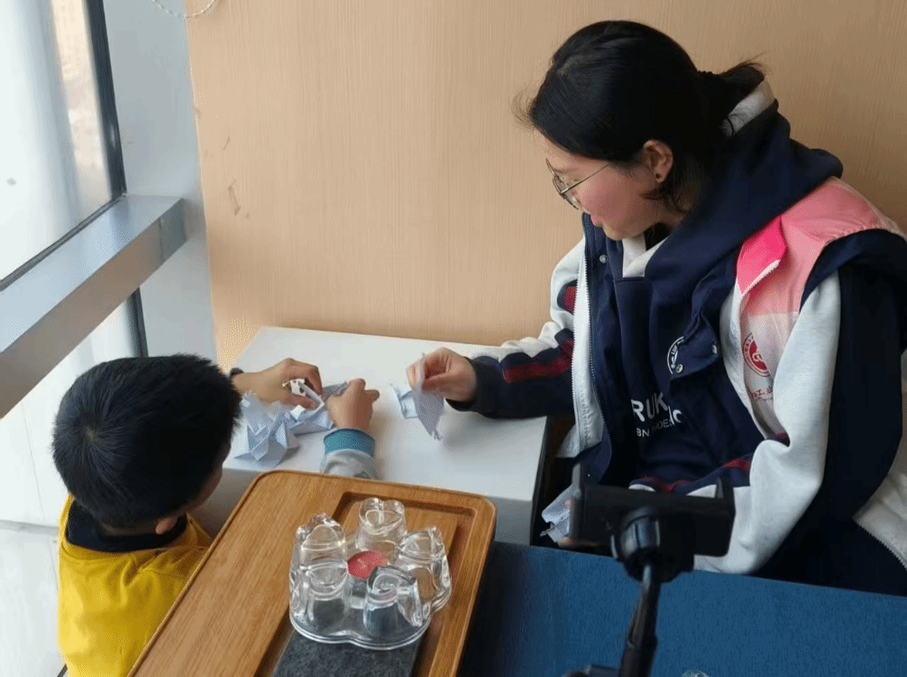 外语学院学子与孩子做折纸游戏
