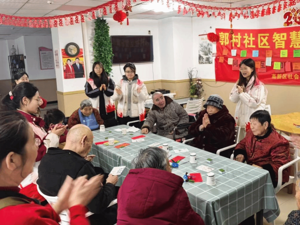 此外,志愿者还带领老人做手指操、伸展运动,组织桌面游戏和才艺展示等互动环节,引导老人参与集体活动。