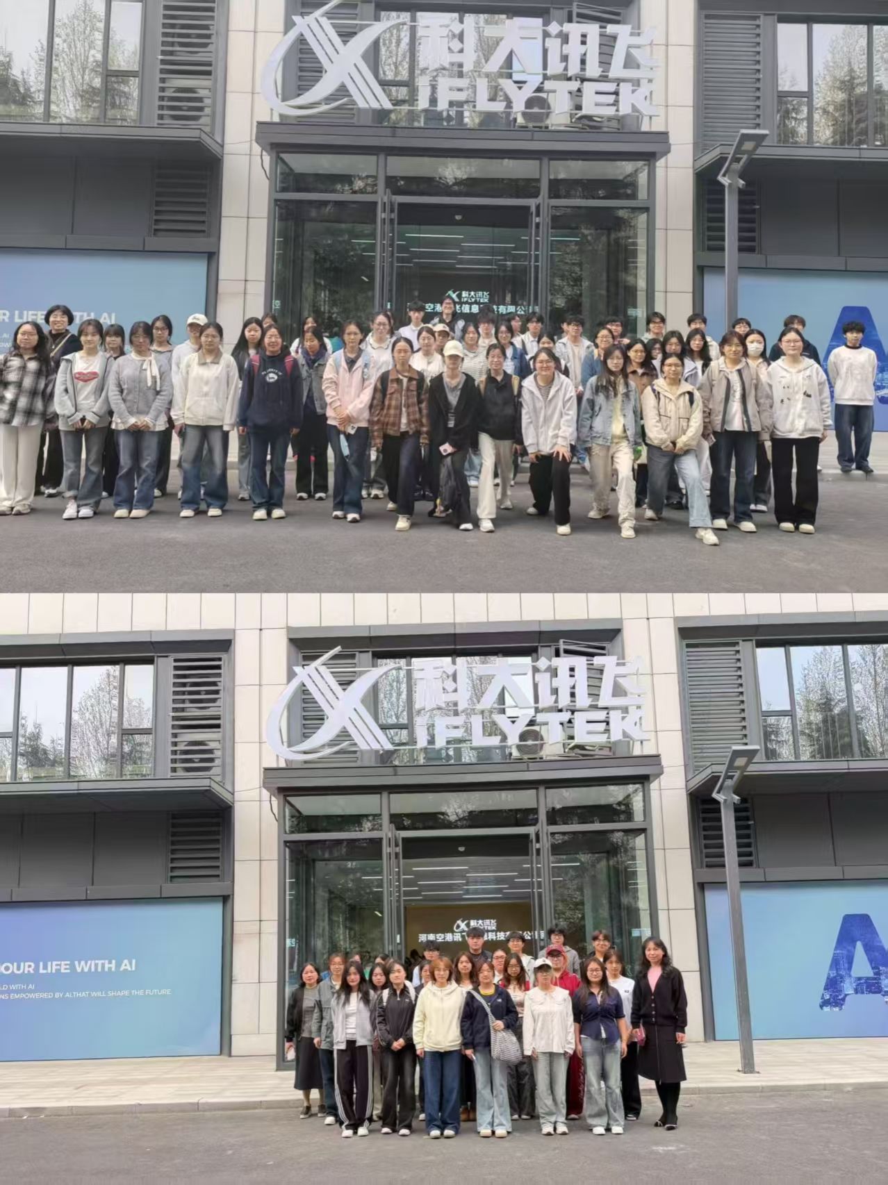 为深入推进一流本科专业建设,促进人工智能技术与外语教学的深度融合,进一步提升学生的专业实践能力与行业认知水平,外语学院于2026年3月31日下午组织2025级全体本科生赴科大讯飞股份有限公司中原总部开展专业见习活动。翻译系主任靳亚铭、英语系主任康方、辅导员张梓承及专业见习课程教师共同参与,带领学生走出课堂,实地感受人工智能技术在语言服务领域的前沿应用。